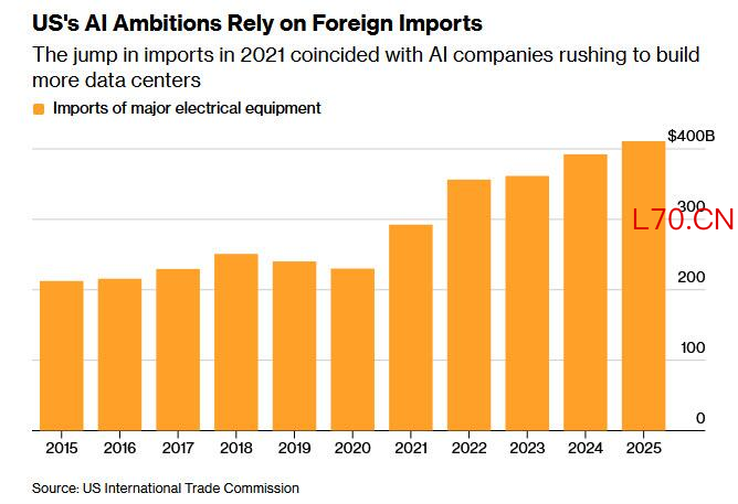 据报道,美国国内制造产能无法跟上需求增速,建设方不得不大量依赖进口。GE Vernova电气化部门首席执行官Philippe Piron指出: