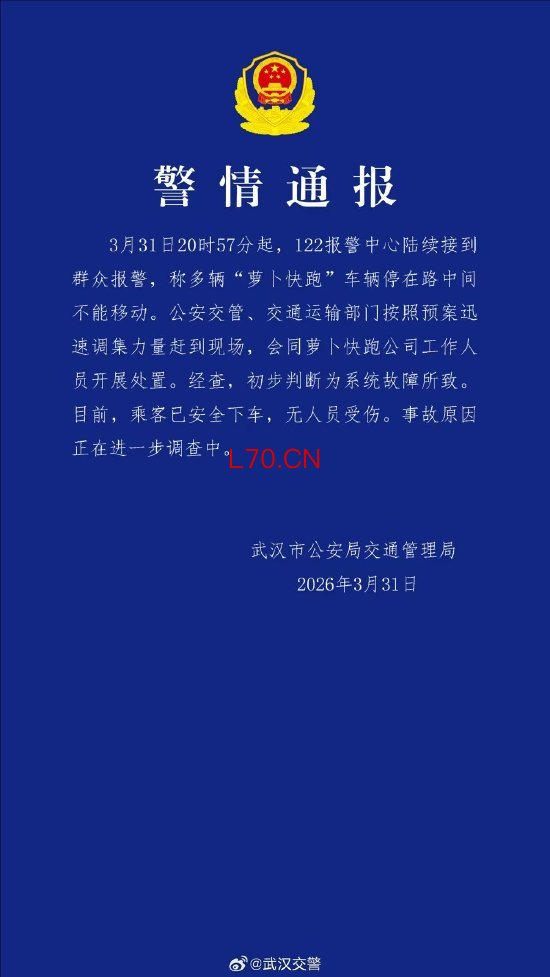 武汉交管通报:多辆“萝卜快跑”停在路中无法移动,详细原因调查中