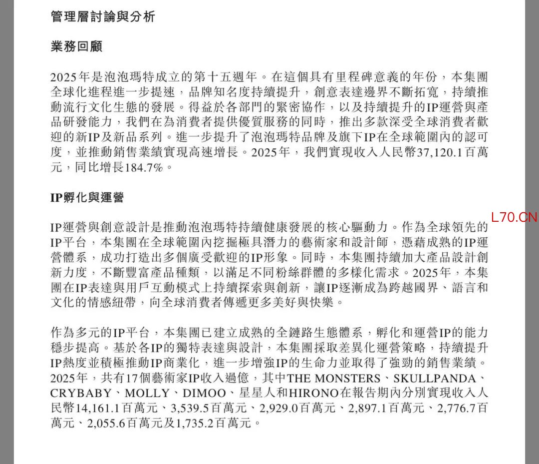 市场人士指出,公司公布全年营收增长仍在很大程度上依赖LABUBU销售,令原本寄望其他IP接力增长的投资者感到失望。