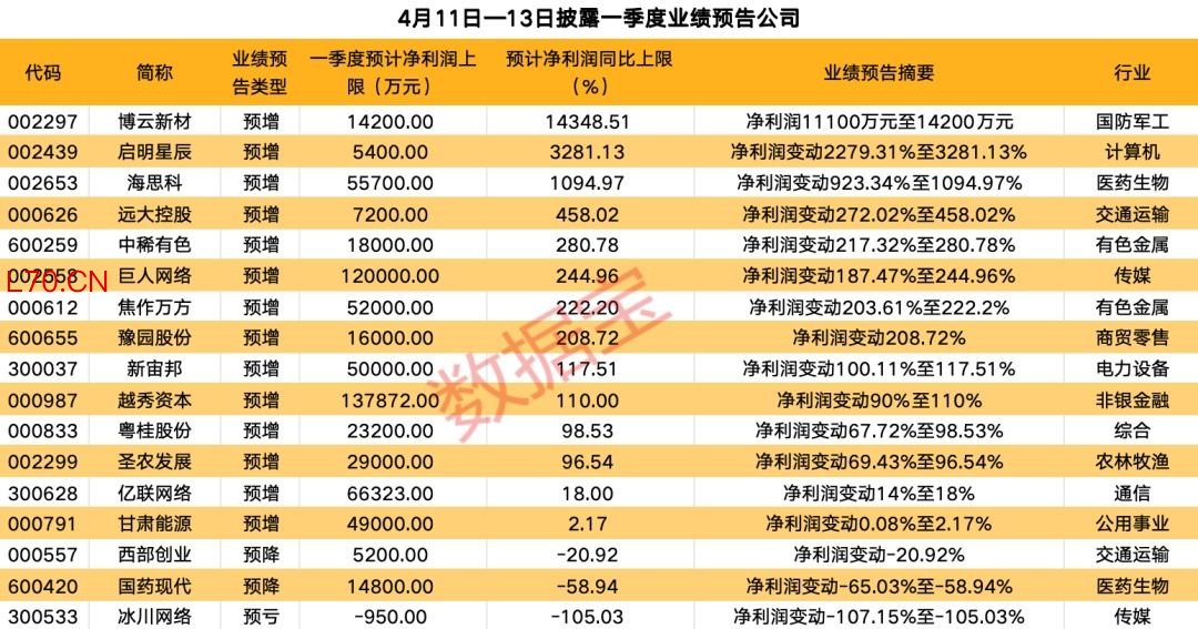一季度净利润最高增逾百倍
