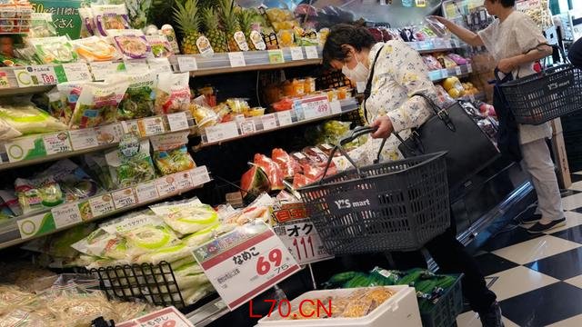 2025年6月20日,顾客在东京一家超市结账购买蔬菜和其他食品。 法新社