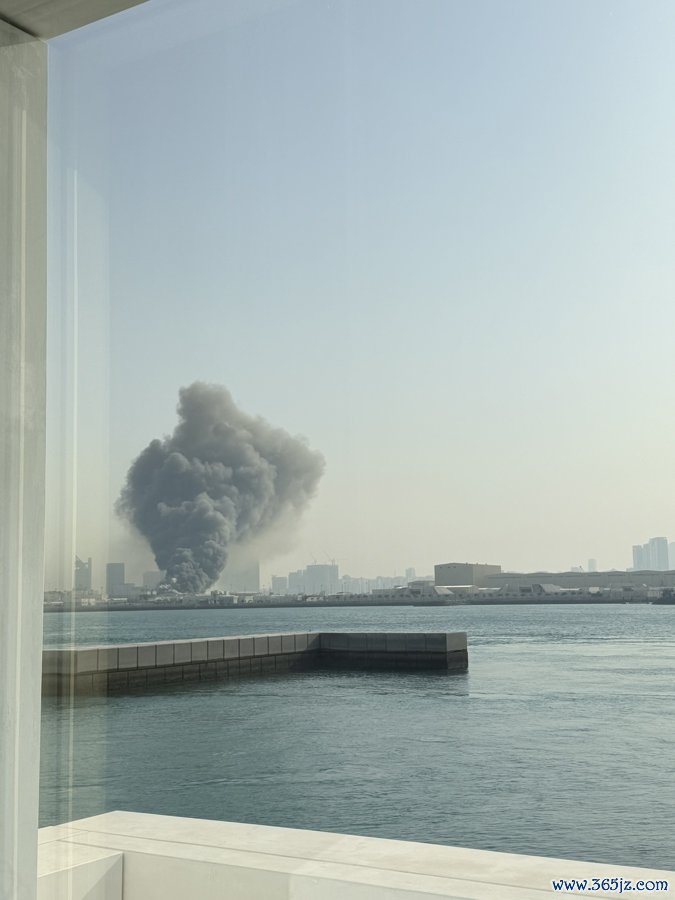 林薇从阿布扎比海上卢浮宫拍到的Zayed码头被炸场景。 受访者供图